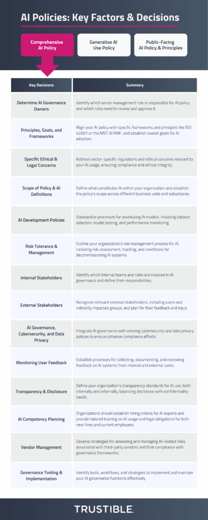 As organizations increase their adoption of AI, governance leaders are looking to put in place policies that ensure their AI deployment aligns with their organization’s principles, complies with regulatory standards, and mitigates potential risks. But where to start in developing your policies can oftentimes be overwhelming.