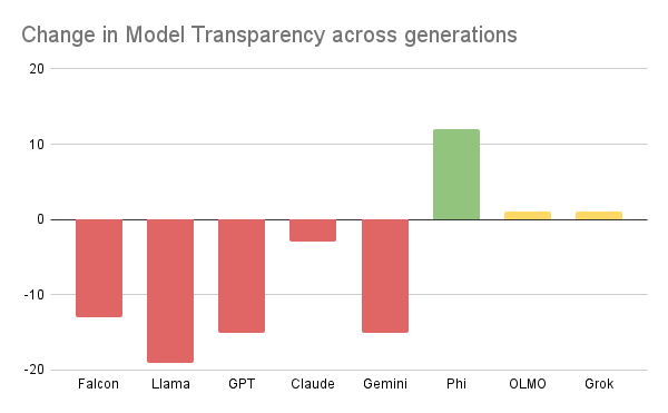 Change in Rating between the two most recent releases in the same model series. Many models have become less transparent over time.